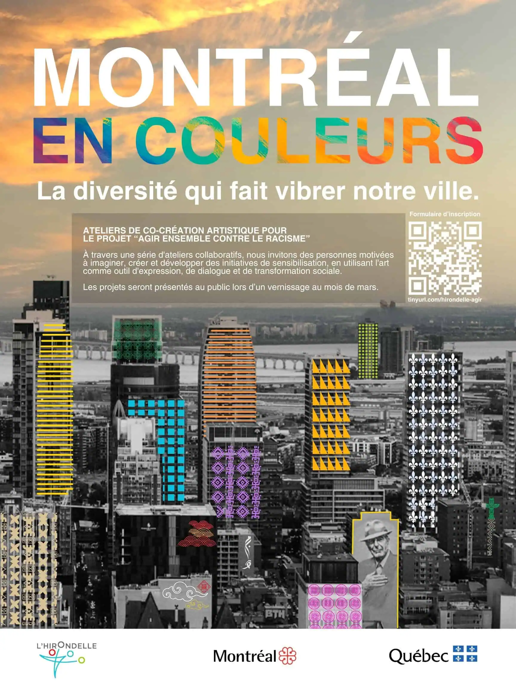 Dans le cadre du projet Agir Ensemble contre le Racisme, L’Hirondelle vous invite à prendre part à un projet artistique collectif développé à l’occasion de la Semaine d’Action Contre le Racisme (SACR), qui se déroulera du 20 au 31 mars 2026, dans le cadre du programme Montréal Inclusive.